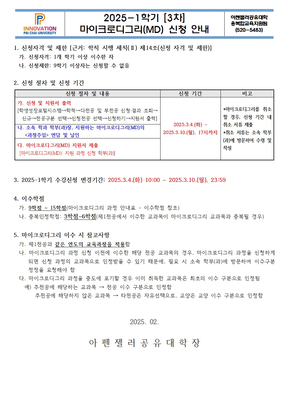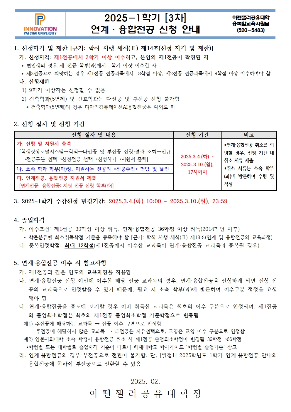 2025학년도 1학기 [3차] 연계·융합전공 및 마이크로디그리 과정 신청 안내